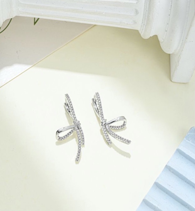 Brinco argola click formato de laço cravejado em zirconias cod 71635